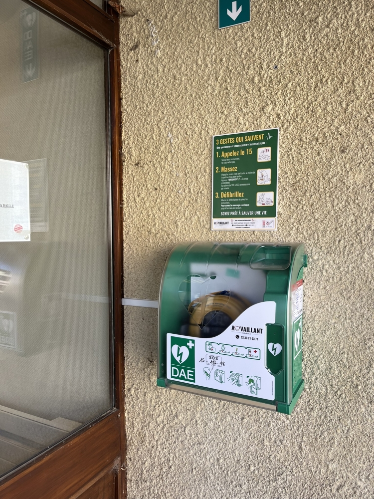 A Espirat, votre électricien TB Elec à installée une alimentation pour le nouveau défibrillateur Automatique Extérieur (DAE) de la salle des fêtes d'Espirat