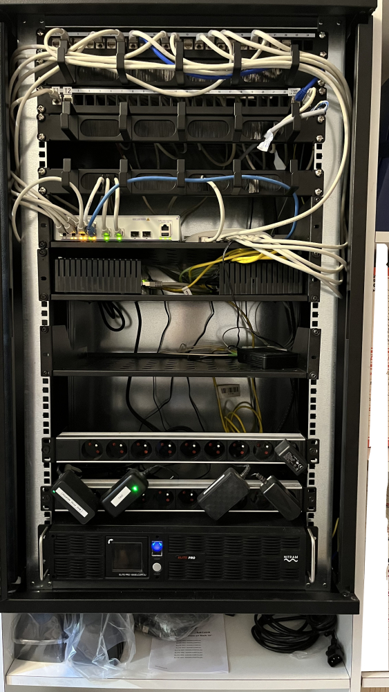 Votre électricien à Chauriat à installé une nouvelle baie de brassage et déplacé l'ensemble des câbles réseaux arrivant dans l'ancienne petite baie ne fermant pas dans la nouvelle baie respectant les normes informatique.