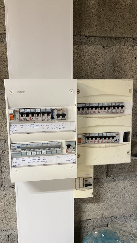 - Le remplacement du tableau simple par un tableau 2 rangées avec la pose d'une GTL pour le passage des câbles existants et des nouvelles lignes.